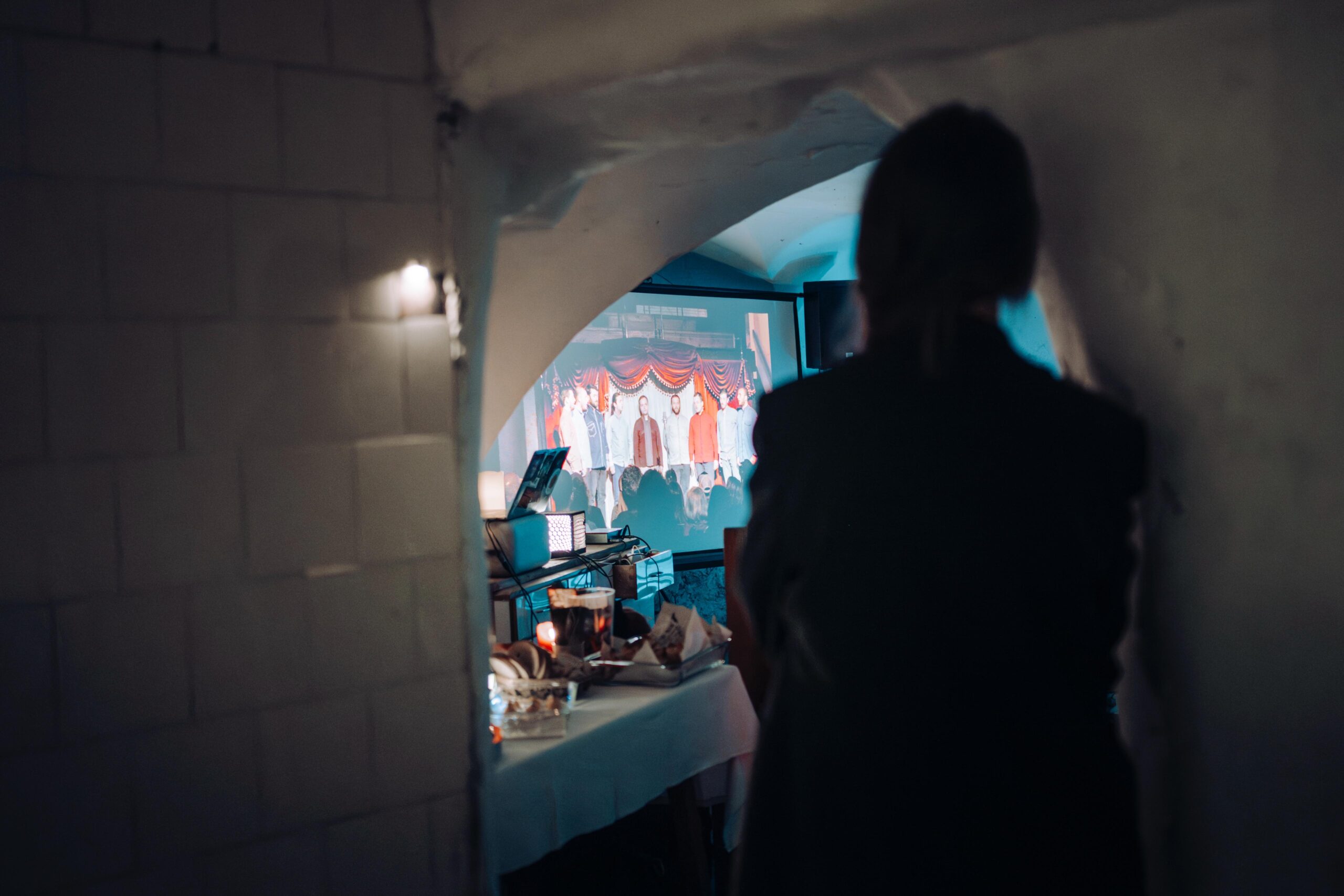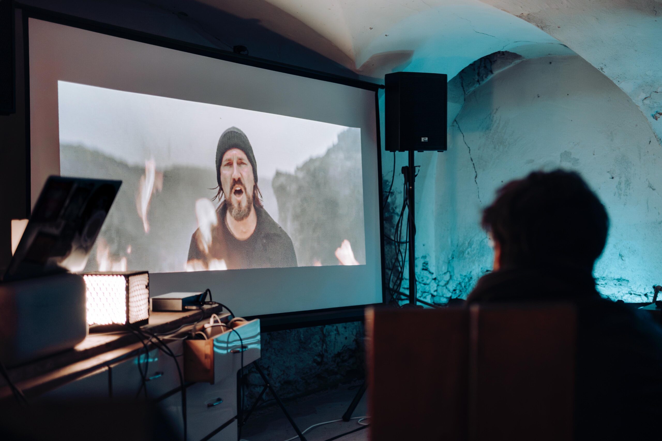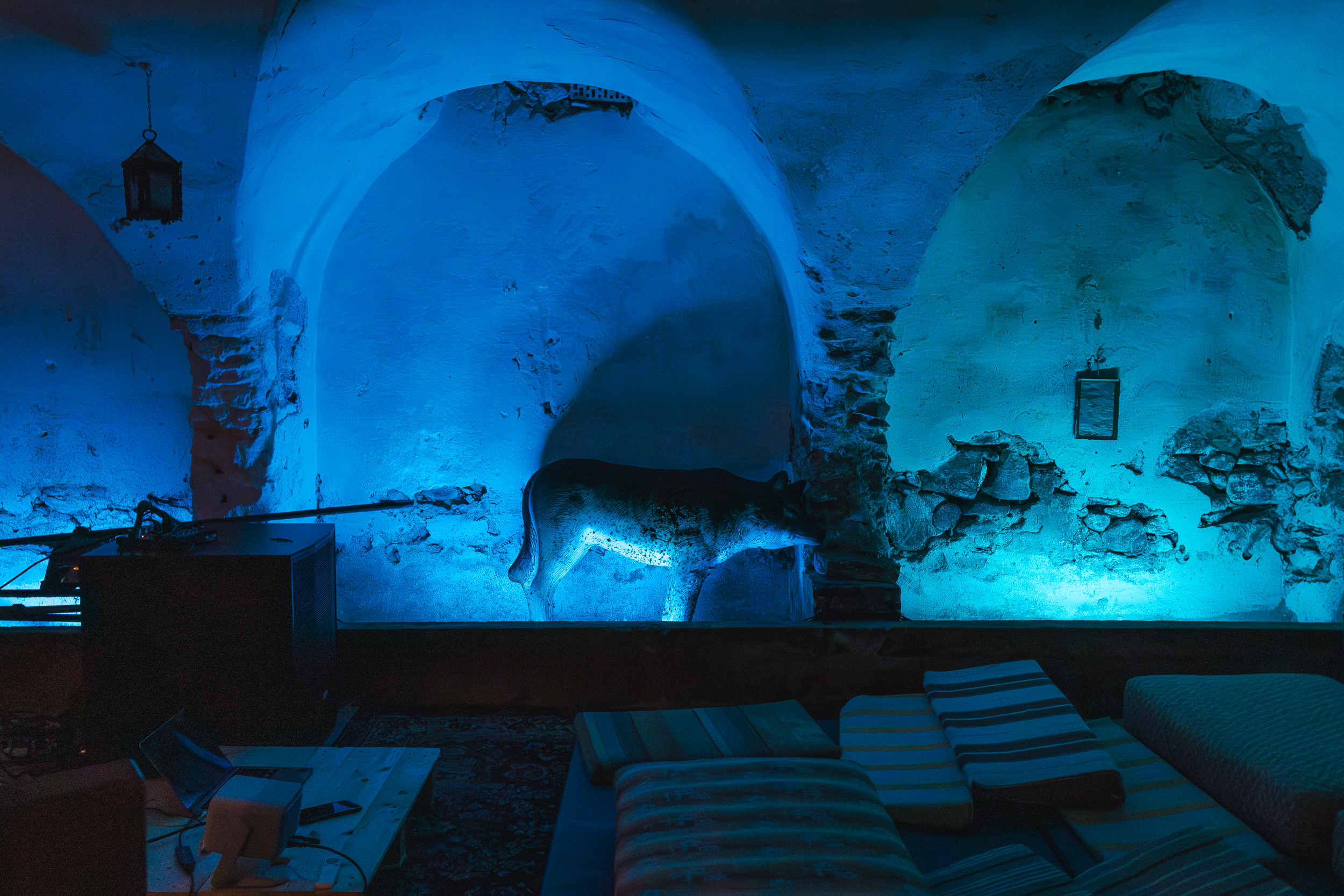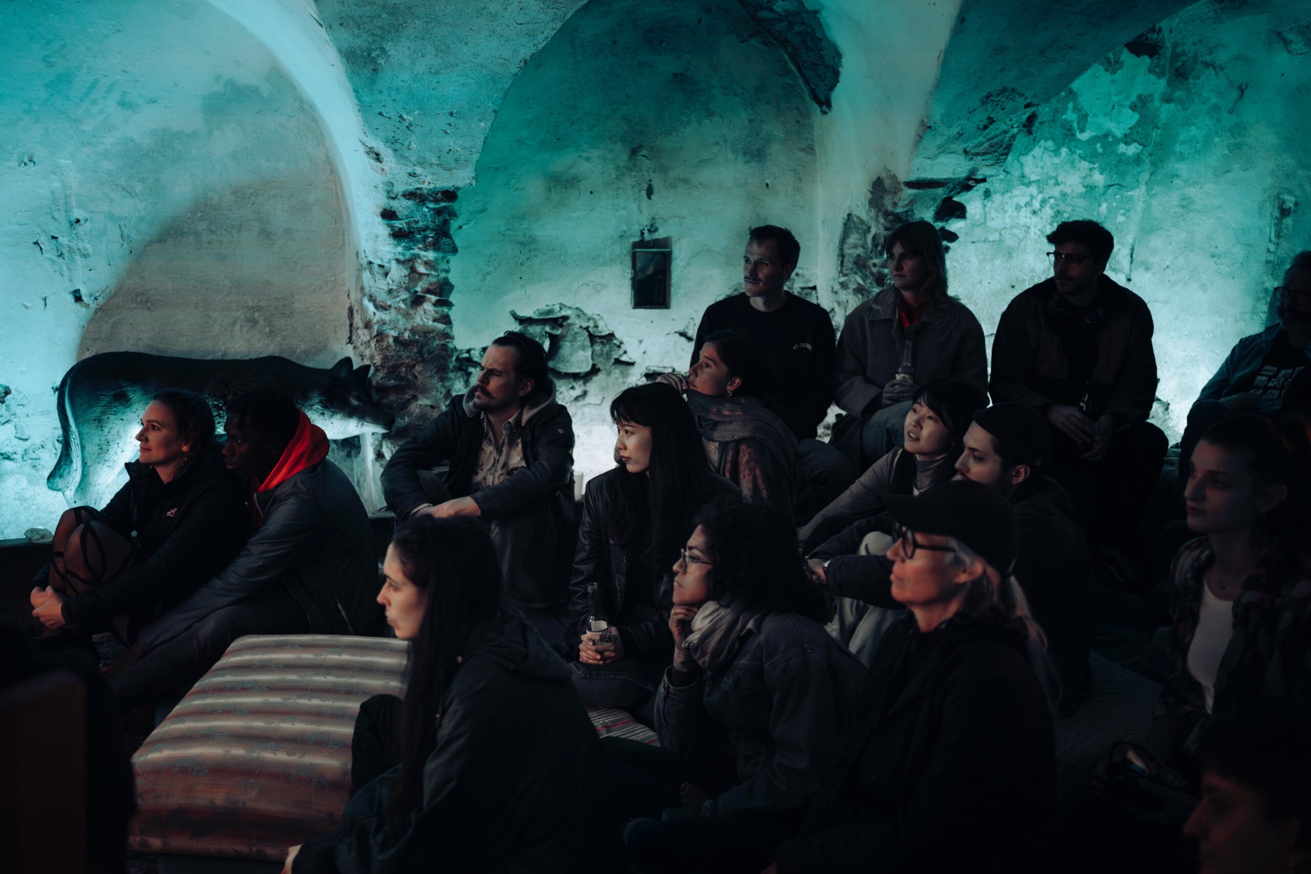 Wie viele von uns werden bleiben? Das Video beantwortet diese Frage mit den Worten „some will remain“. Manche werden bleiben und eine „Bleibe“ finden, wie die Schaumstofffiguren beweisen. Ein Nicht-Wolf lehnt an einem der steinernen Stall-Gewölbe und wartet mit uns auf das folgende Programm.