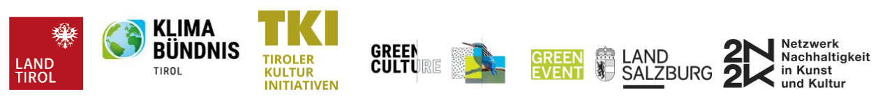 - Klimakultur Tirol ist die bislang erste Initiative in Österreich, die sich aus einer gemeinsamen Förderung der Abteilung Landesentwicklung und der Abteilung Kultur das Landes Tirol 2022 konnte so eine Koordinationsstelle bei Klimabündnis Tirol sowie TKI – Tiroler Kulturinitiativen installiert werden. Die Initiative gibt vorbildlichen Kulturprojekte und Künstler:innen eine Plattform und zeigt so das klimakulturelle Potenzial Tirols.