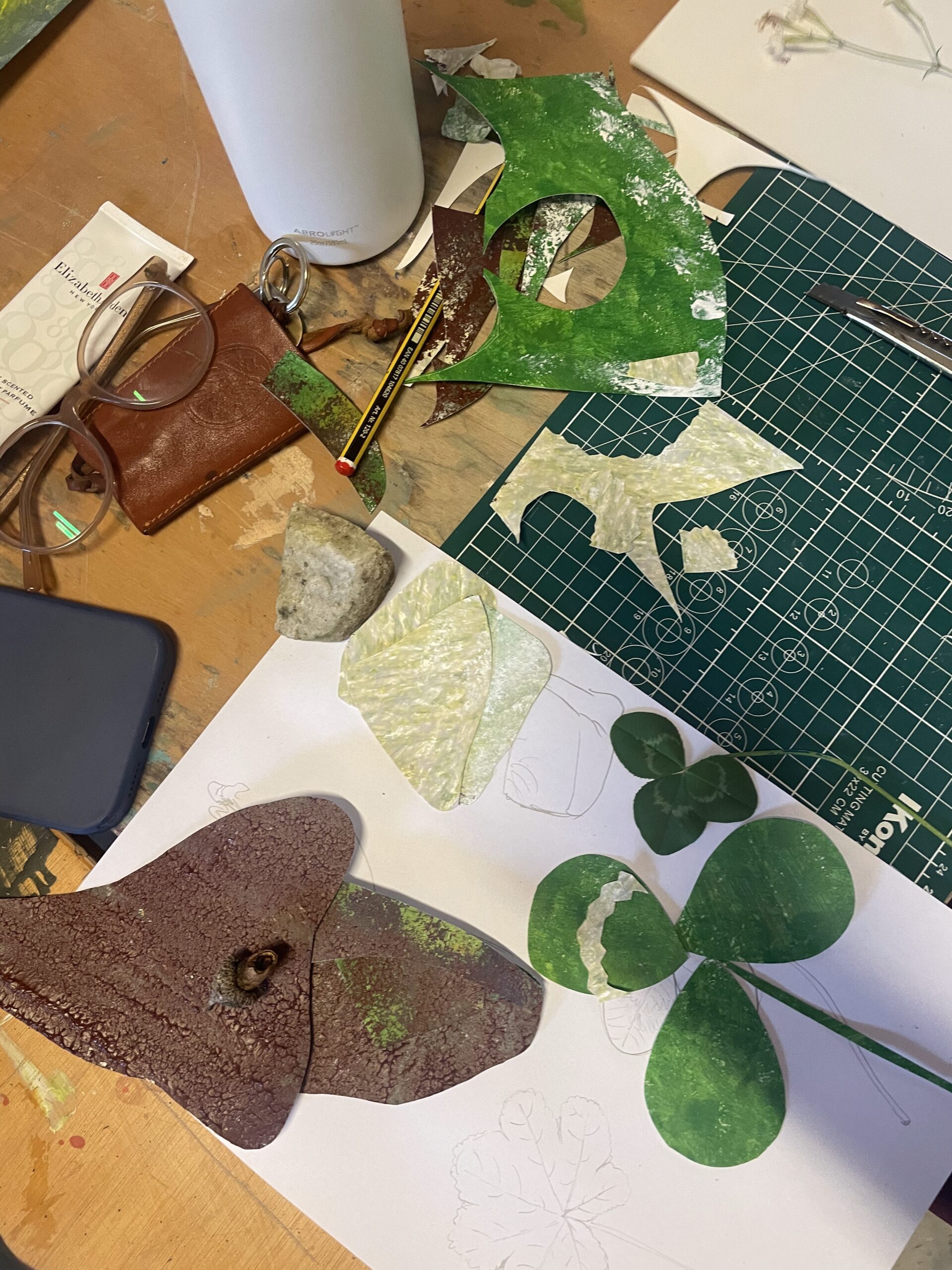 Die Teilnehmenden unternehmen eine visuelle Reise durch Stängel, Blüten und Blattwerk. Ausgangspunkt ist die eigene Zimmerpflanze. Der Workshop ist eine Einladung genauer hinzusehen und diese Beobachtungen zu konservieren. Farben, Formen und Strukturen werden in Collagen mit selbst grundierten Papieren verarbeitet. Das Denken in Bildern und mit den Händen kann als aktivierender Zugang fungieren, die eigene Beziehung zur Natur wahrzunehmen und vielleicht neu zu denken.